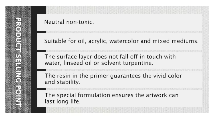 ● Přizpůsobení:Naše umělecké plátno může odpovídat vašim klientům, kteří kreslí potřeby. Vyberte si libovolnou velikost od 12x16 palců do 48x60 palců, aby se váš prostor dokonale hodil. Také náš materiál na plátně a GSM mohou být vlastní podle vaší poptávky po objednávce.