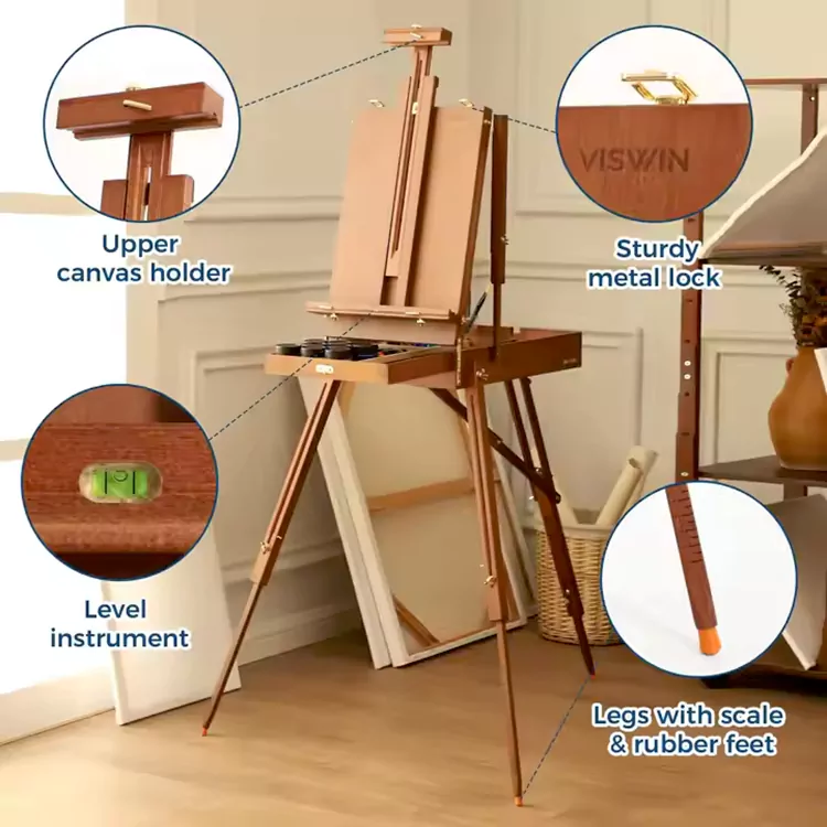*Aplikace: Olejové malíři vytahují francouzský stojan pro náčrtky východu; Akrylové umělci to úhlu v kavárnách. Jeho rozsah výšky 57 "-72" + naklonění dopředu drží akvarely, oleje, uhlí. 300+ Pro Studios to používá, protože jedna souprava dobývá studia, pole, obývací pokoje.