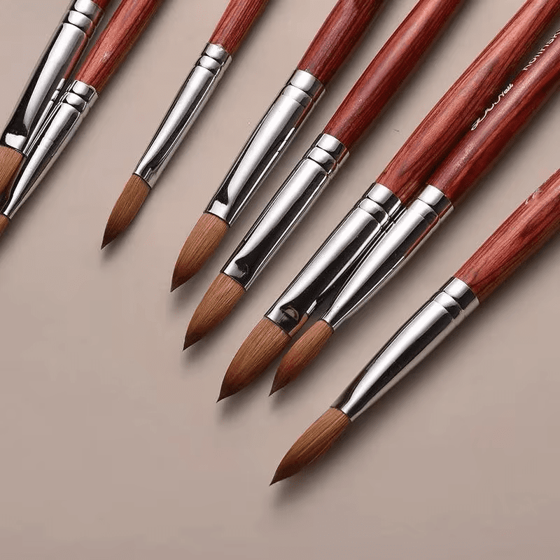 Toto je Sable Hair Paint Brush, který jsme vyrobili. Sable kartáče na vlasy nabízejí vynikající kapacitu držení barvy a jemnější, citlivější hrot než nylonové kartáče, což umožňuje hladší tahy a lepší kontrolu. Poskytují také lepší elasticitu a přirozené odpružení, díky čemuž jsou ideální pro detailní a výraznou práci. My Ningbo Phyno jako výrobce štětců můžeme přizpůsobit štětec na sobolí vlasy podle vašeho požadavku. Těšíme se na váš dotaz.