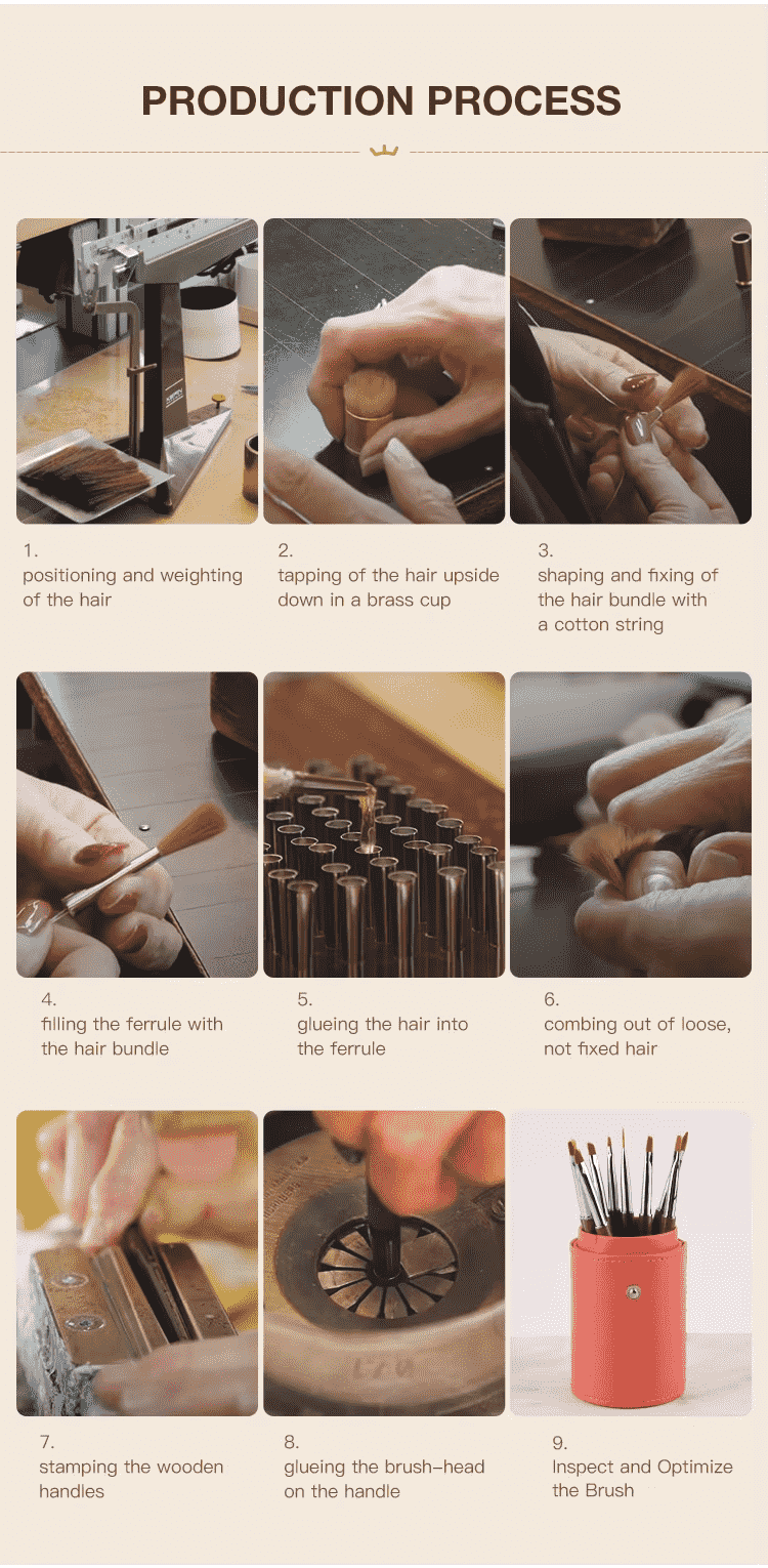 Ningbo Phyno je jedním z největších výrobců sobolích štětců v Číně. Jsme flexibilní, pokud jde o kvalitu a náklady, takže můžeme spolupracovat s mnoha globálními klienty po celém světě, jsou to: klient značky, super centrum, prodejce Amazon a umělecké studio. Vítejte, pošlete nám dotaz na jakýkoli požadavek OEM, můžeme vám přizpůsobit: materiál kartáče, velikost, logo a balíček pro vás.
